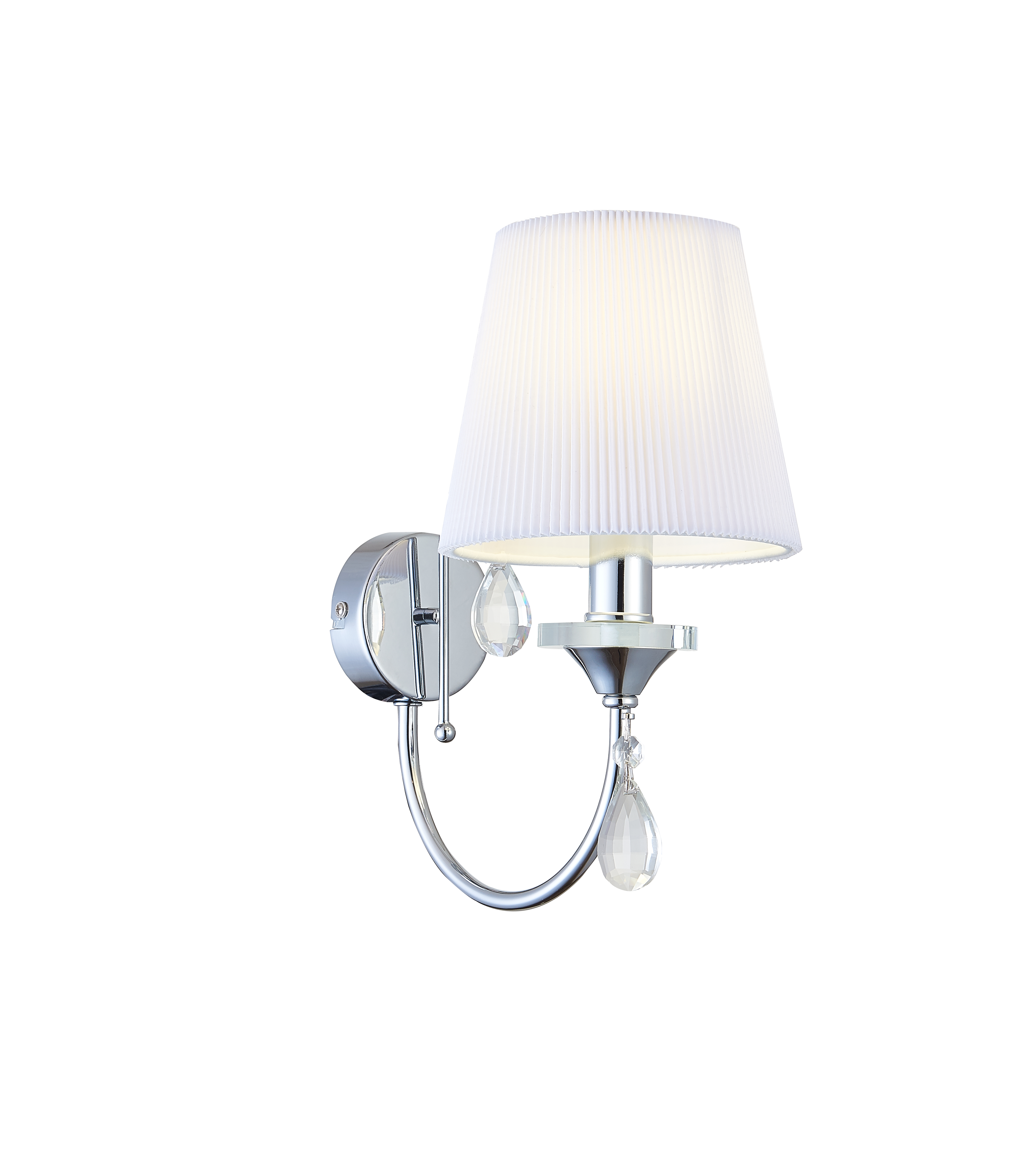 Бра из металла цвета хром белым абажуром из ткани и изящным стеклянным элементом. 1хЕ14